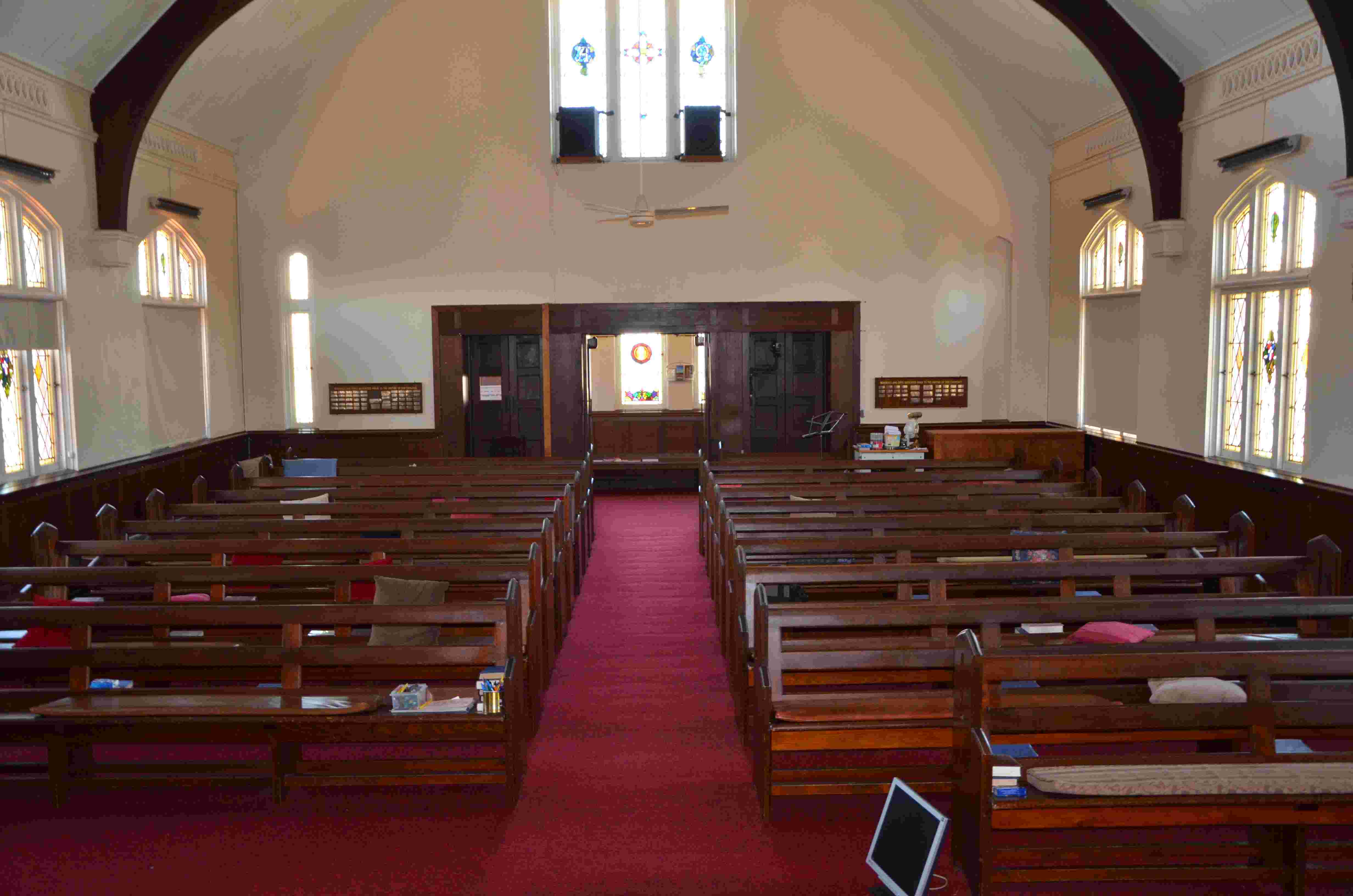 Photo (taken in April 2013) of inside the Uniting Church in Kingaroy. It was formerly the Methodist Church. I was sitting about four rows back on the right hand side from the view of the preacher (West side) when I came under conviction of sin in about January 1962.